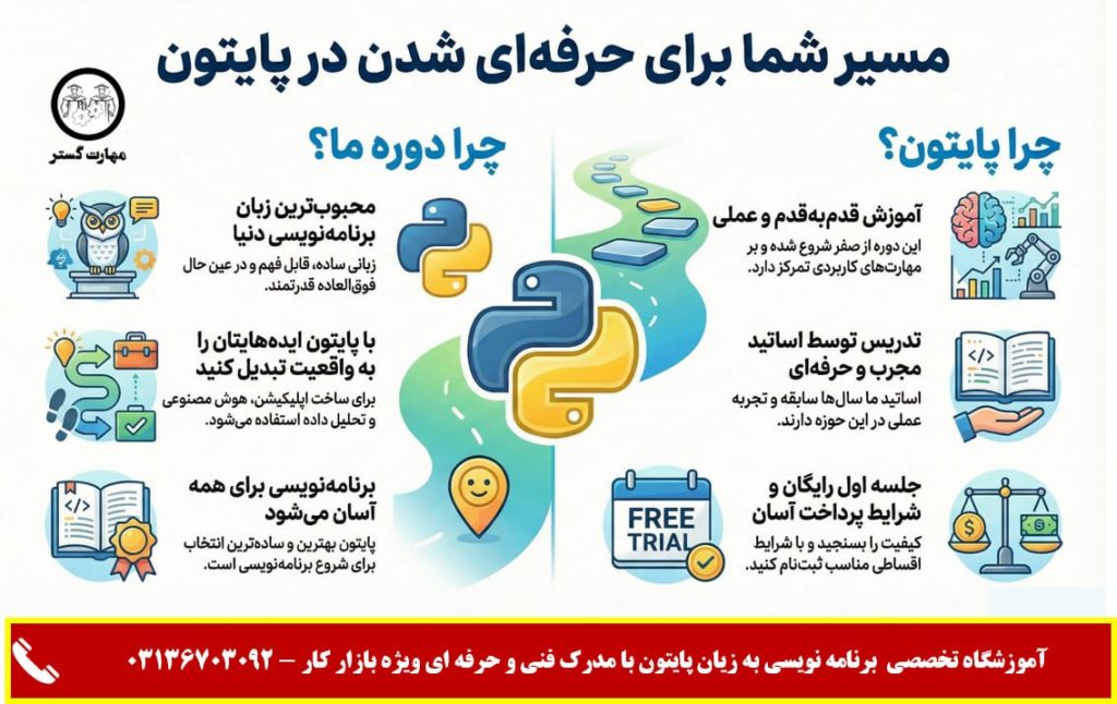 | آموزش عمومی پایتون | ۱۲ | ۲ ساعت | ۳,۱۵۰,۰۰۰ تومان |